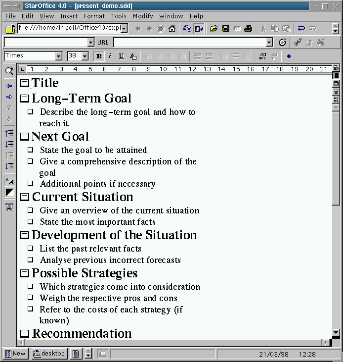 Het is onmogelijk om alle features van StarOffice in een enkel artikel te bespreken. Daarom zal ik deze serie beginnen met een van de applicaties die ik het hardst nodig had onder Linux: de presentatie editor, de PowerPoint voor Linux