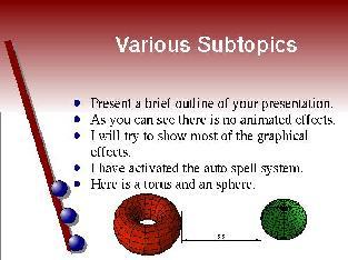 We kunnen de objecten in onze presentatie laten bewegen en communiceren op voor-gedefieerde manieren (Tools-> Effects). Tijdens het maken van de presentatie kan men aangeven hoe ieder object moet verschijnen en verdwijnen.