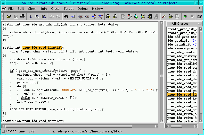 SNiFF+ is an Integrated Development Environment for the Languages C, C++, Java, IDL, Fortran77, Fortran90 and ADA. SNiFF+ gives you the possibility to visually understand your code. Users of other big operating systems may already be used to such development environments and be very happy to see that such an IDE is available for Linux.